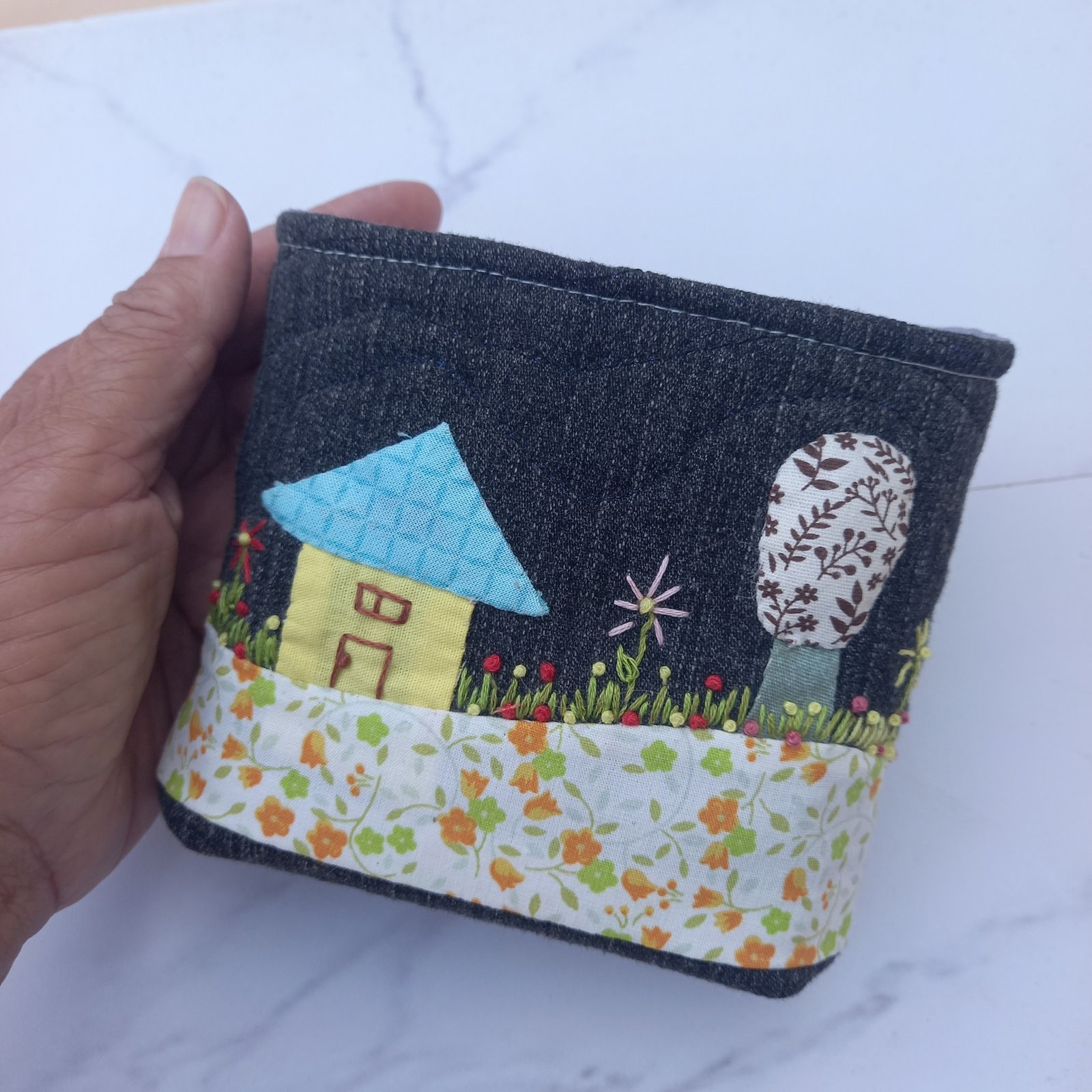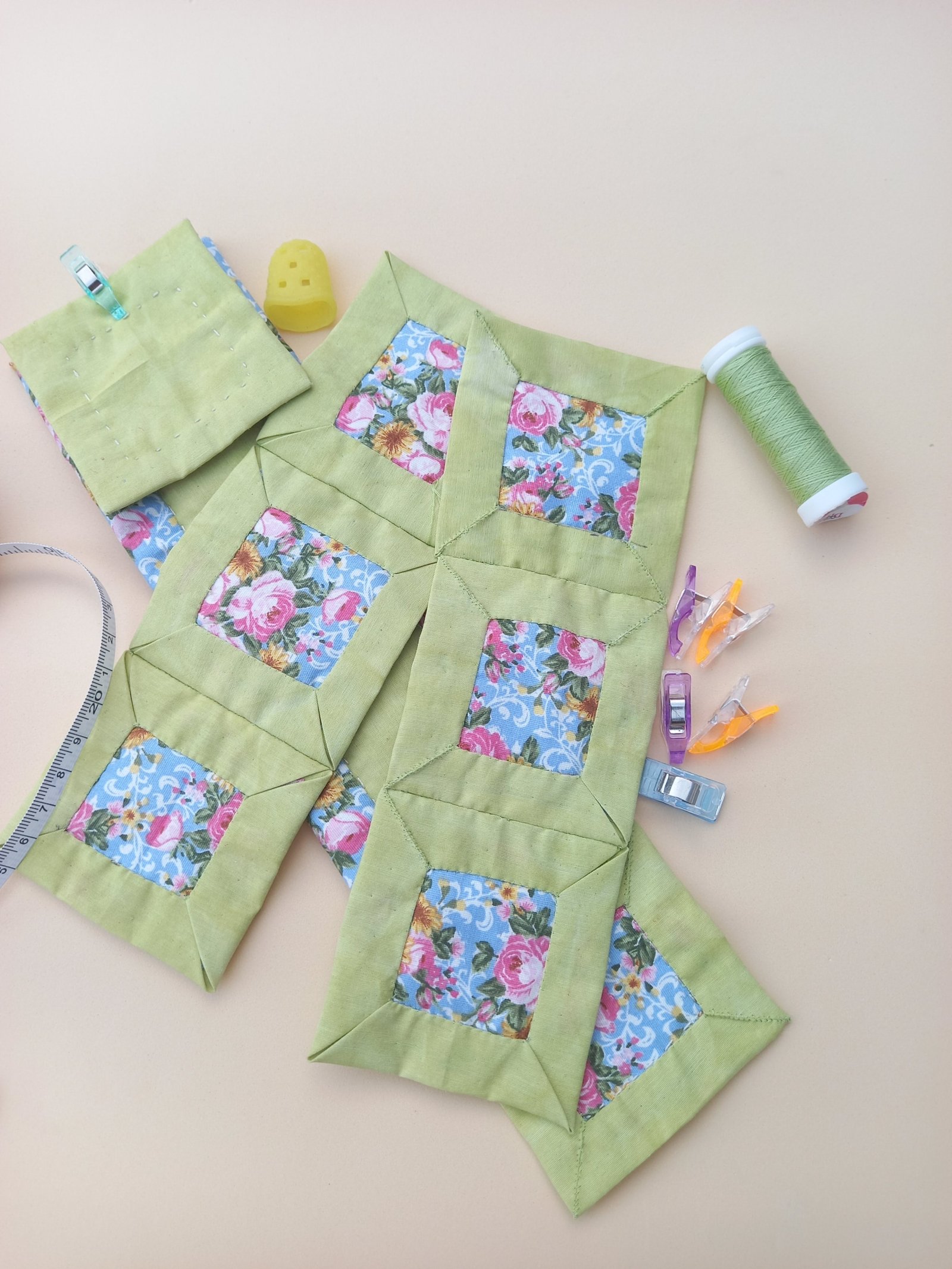 É o patchwork feito à mão.