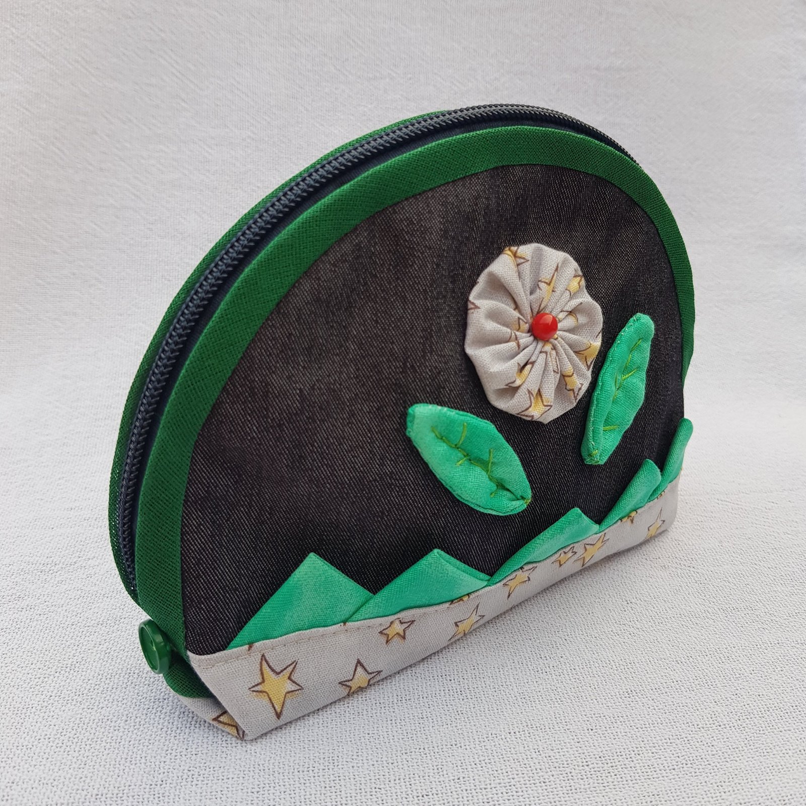 Mais uma vez estou aqui pra falar do quanto o Fuxico é versátil. É certo que pode ser usado de “N” maneiras mas e quanto ao acabamento? Bem o acabamento também pode ser feito usando técnicas distintas como ponto de bordado,crochê, ponto palito enfim como sua criatividade sugerir. Mas desta vez vou mostrar como aplicar um lindo fuxico com um lindo acabamento embutido. Vou te mostrar como fiz e sei que você vai amar. A ideia não é minha achei num blog na internete.