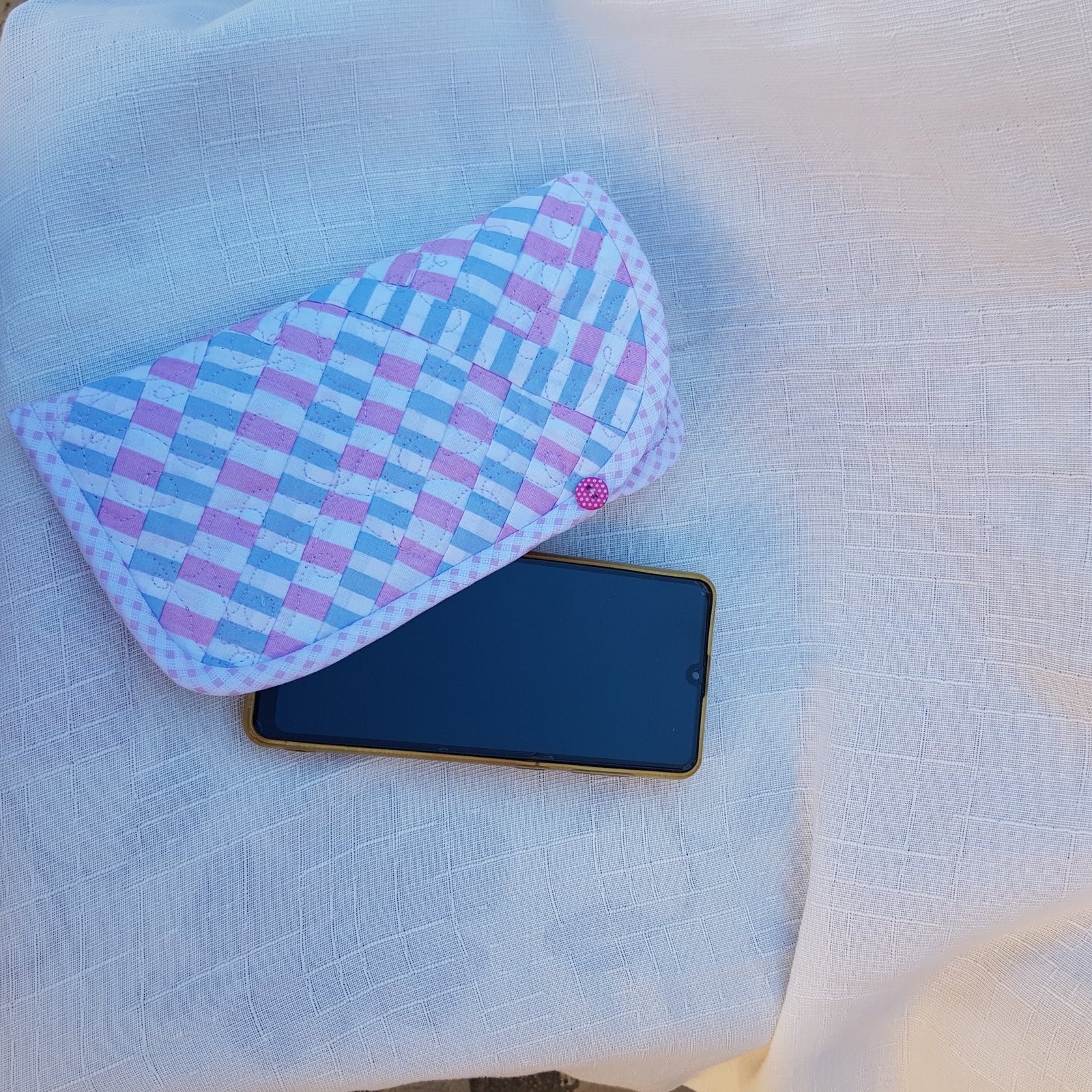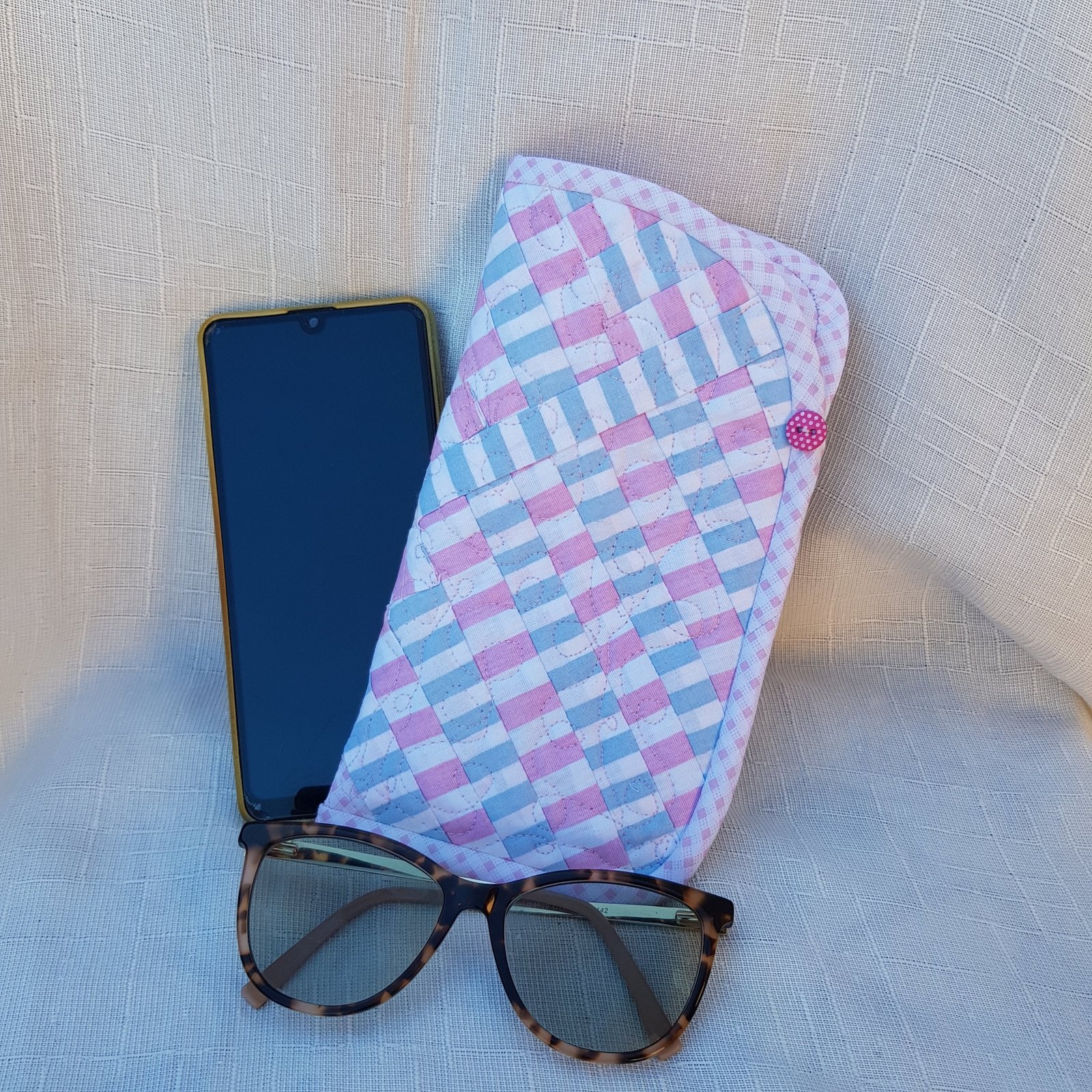 Bolsinha para óculos com bloquinhos de patchwork. Pode ser usada também para proteger seu celular. Um presente .exclusivo que agrega afeto para quem recebe.