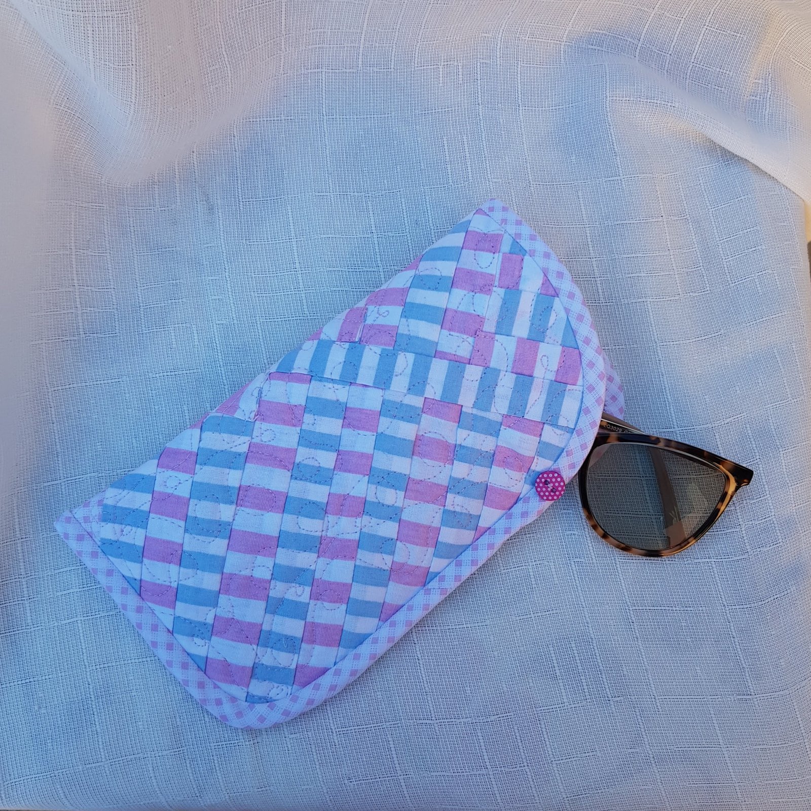 Porta óculos azul e rosa